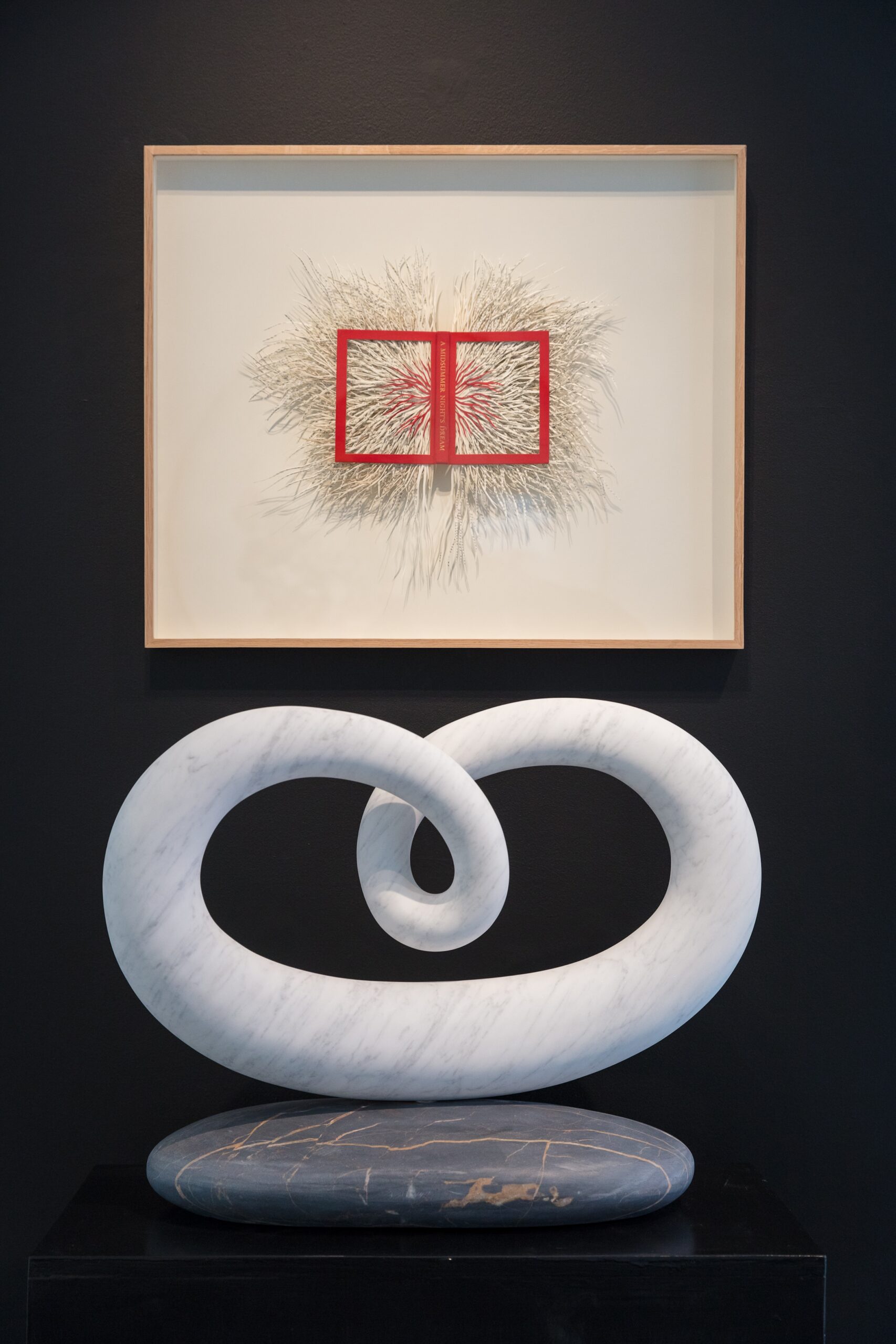 William Peers’s practice routinely involves imposing boundaries and rules and then working through his process, exploring the forms that emerge. Recently he has been investigating the movement of a line freed from the earth, travelling in space like an air current, weightless and uninhibited. The result was a series of sculptures with continuous loops, each one the journey of a slight volume through space. This new collection of sculptures is an exploration of the process of interrupting this loop.