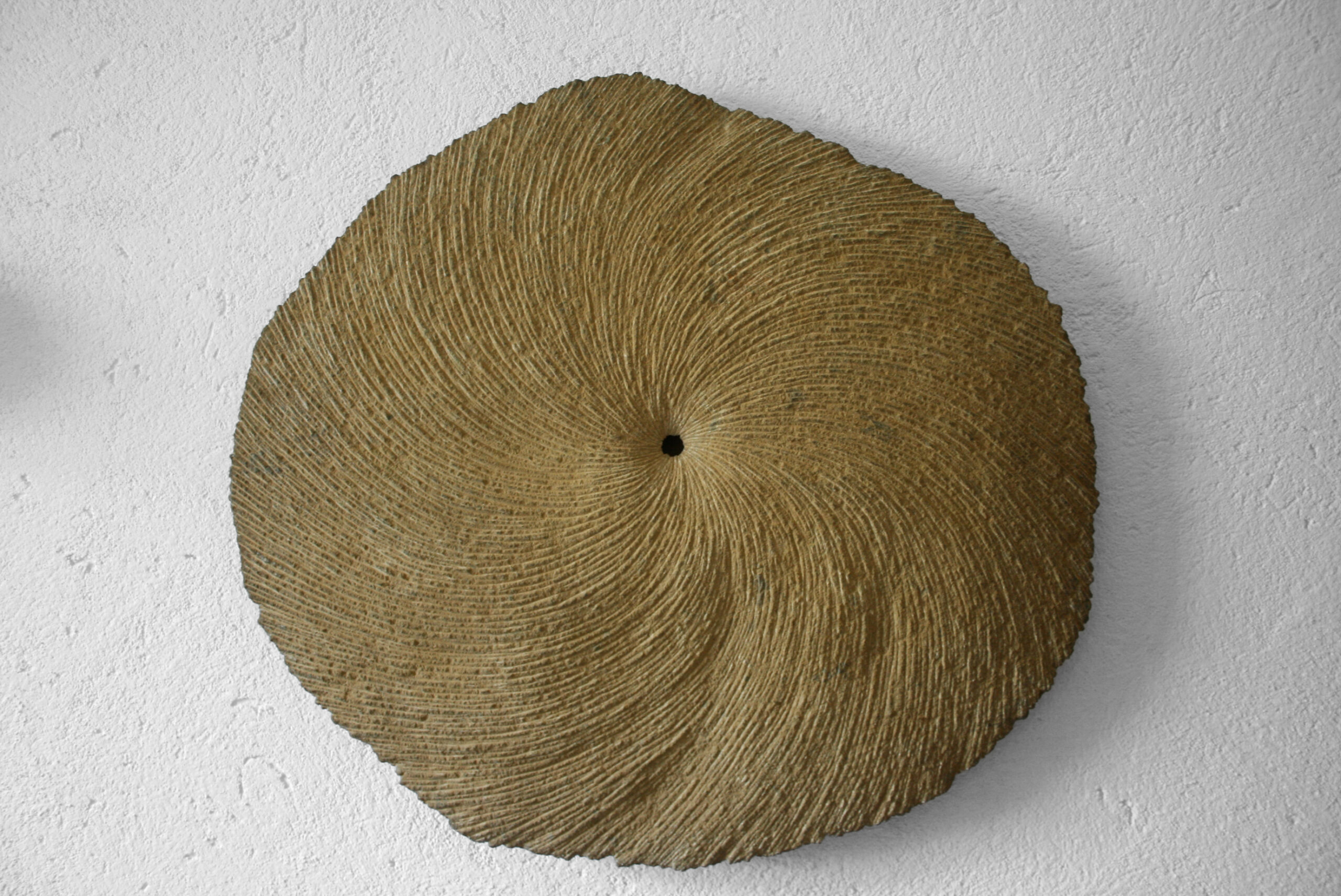 The stone is pierced by wandering vertical slits and the ‘landscape’ drops off away from these piercings.